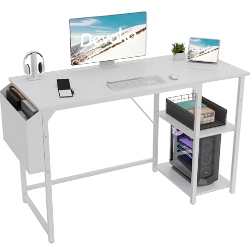 • Devoko 120cm Computer Schreibtisch mit Reversible Regal,Schreibtisch Kleiner Tisch mit Kopfhörerhaken, Computertisch Klein für Home Office,Bürotisch Kleiner für Heimbüro,Weiß