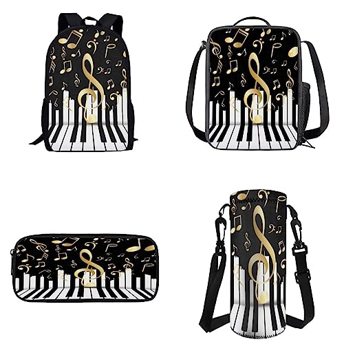 • Tomeusey Schul-Büchertaschen-Set für Erwachsene und Kinder, lässiger Tagesrucksack mit großem Fassungsvermögen, mit Lunchboxen, Stifttaschen, Wasserflaschenhalter, Musik, Schulranzen-Set