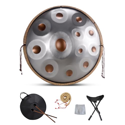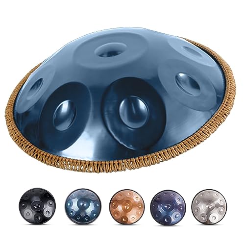 • Handpan Drum in D-Moll 10 Noten 22 Zoll 432Hz/440Hz Stahl Hand Drum – Klassisches Hand Pan Instrument mit Tasche, Schlägel und Ständer