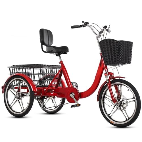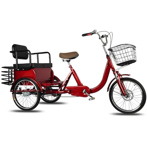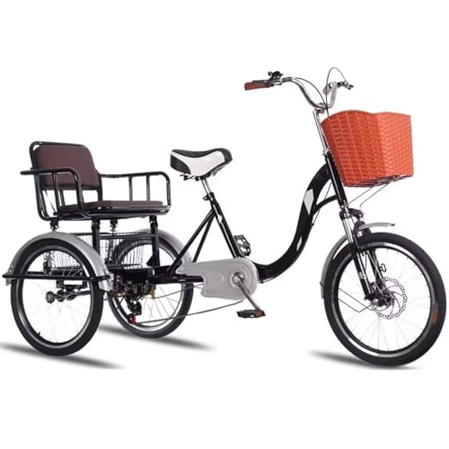 • LSQXSS Dreirad für Senioren, 3-Rad mit Beifahrersitz, 20-Zoll-Dreirad mit Vorderradfederung, Scheibenbremse vorne, Gepäckkörben vorne und hinten, Tretunterstützungs-Cruiser für Freizeit und Training
