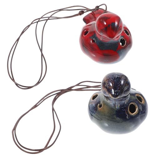 • Mikikit 2 Stück Keramik Okarina für Anfänger Musikinstrument mit Mehrstimmigem Klang Rot Blau für Musikalische Früherziehung und Entspannende Spielzeit