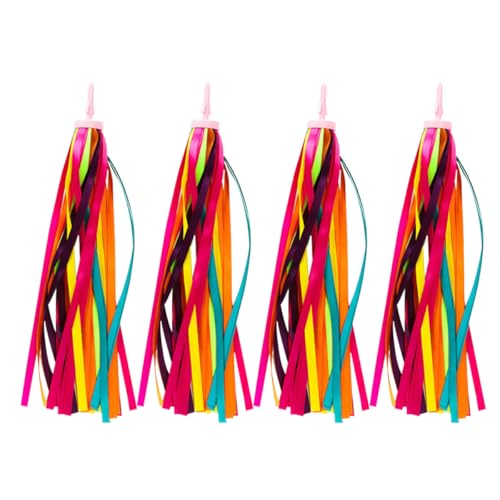 • Hemobllo 4 Stück Roller Lenkerbänder aus Polyester mit Clip Bunte Satin Quasten für Kinderroller und Fahrräder Abnehmbare Dekoration für Outdoor Festlichkeiten
