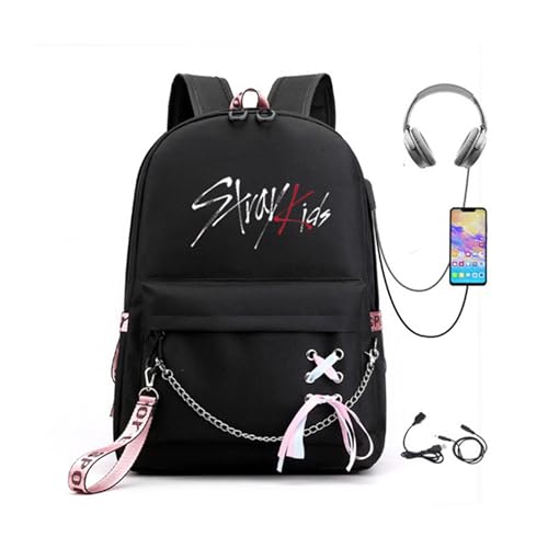 • Roffatide Stray Kids Merch Rucksack für Mädchen und Jungen KPOP SKZ Schulranzen Lässiger Rucksack für Stay Schwarz B
