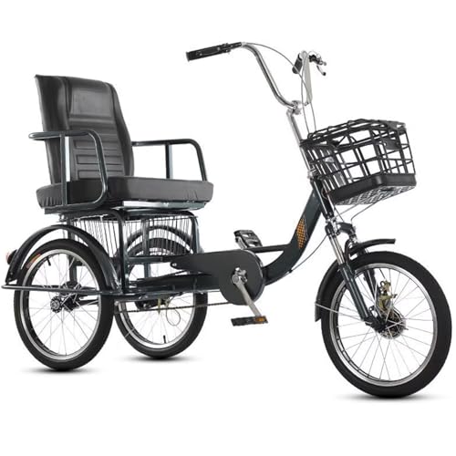 • LSQXSS Dreirad für Senioren, 3-Rad mit Beifahrersitz, 20-Zoll-Dreirad mit Vorderradfederung, Scheibenbremse vorne, Gepäckkörben vorne und hinten, Tretunterstützungs-Cruiser für Freizeit und Training