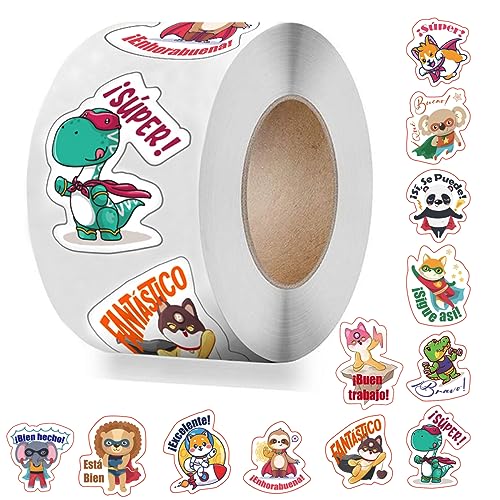 • Spanische Belohnungen Aufkleber & Stanzkarten für Schüler | Klassenzimmer-Zubehör für Lehrer | 12 Lob- und 8 ermutigende Anreizdesigns | Motivationsaufkleber für Kinder 500 Stück