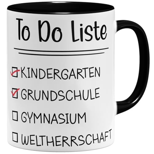 • OM3® 5. Klasse Tasse mit To Do Liste – Sextaner Gymnasium Gymi – Schulstart – Keramik Becher – 325ml – Beidseitig Bedruckt – Schwarz