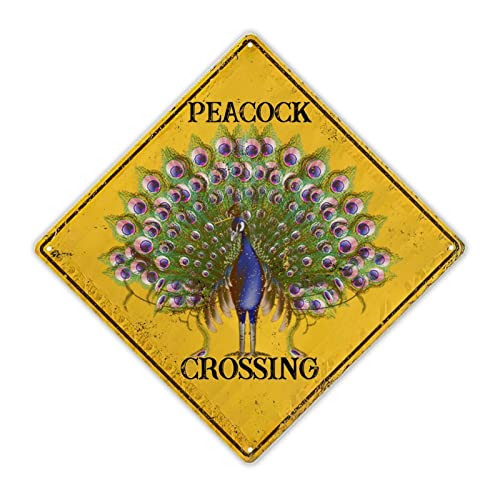 • Watercolor Peacock Crossing Xing Schild Caution Danger Peacock Metal Sign Wildlife Animal Vintage Warnschild Neuheit Crossing Zone Schild für Bauernhof Hof Haustür Indoor Outdoor Straßenschild 1010