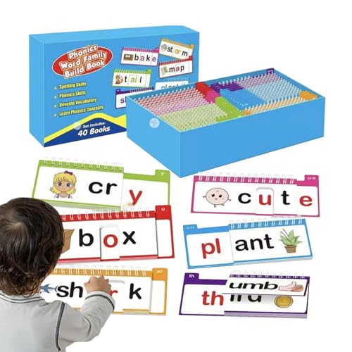 • Raixihu Phonics Wortfamilien Aufbau Lernbuch, 40 Teile Englisch-Lernbücher, Phonics Lernkarten, Für Kinder Von 3-8 Jahren Zur Sprachförderung In Kindergarten Vorschule Und Zuhause