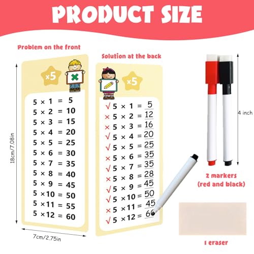 • Packliste: Das 1×1 lernen spiel-set ist ideal für den mathematikunterricht. Enthält 15 gut gestaltete einmaleins karten-blätter, darunter 0-12 multiplikationstabellen und 2 testkarten, zwei bunte marker (schwarz und rot) und einen radiergummi.