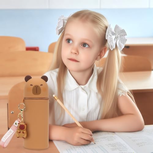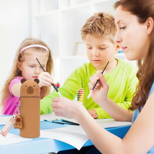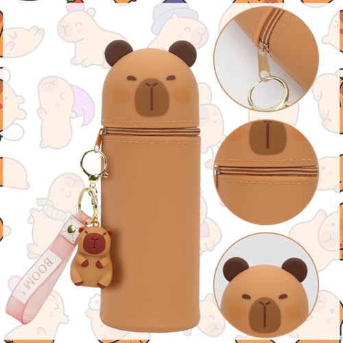 2-in-1 Schulmäppchen aus Weichem Silikon, Kawaii Federmäppchen, Capybara Tischstifthalter mit Schlüsselanhänger, Stand Up Mäppchen, Weiche Silikontasche, Tier Stifthalter für Studenten Reißverschluss