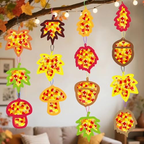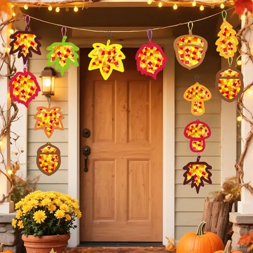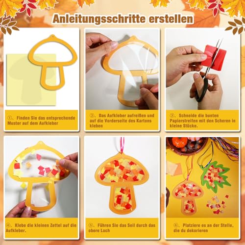 • 【Kinder Herbstdeko Basteln】Reißfestes Papier + unzerbrechliche Schnur + glatte PET-Aufkleber, Löcher in Herbstpflanzen gestanzt, 25cm Band zum einfachen Auffädeln, leicht zu vervollständigen für Kinder ab 3 Jahren, ideal für Kindergarten- und Schulprojekte.