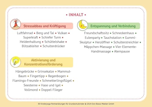 - 30 Kinderyoga-Partnerübungen für Grundschul-Kinder: Bildkarten für Bewegung, Entspannung und Konzentration in Klassenzimmer und Gruppenraum. … und innere Balance. 30 Ideen auf Bildkarten)