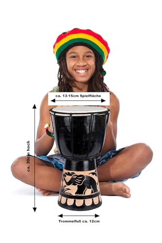30cm Hohe Kinder Djembe Geschnitzt Elefant Trommel Drum Handarbeit Schwarz