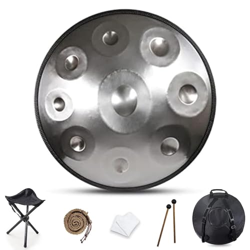 • Handpan Trommel in D-Moll 9 Noten 22 Zoll Stahl Handpan Instrument 432Hz Handpan Trommel mit weicher Handpan Tasche, 2 Handpan Klöppeln, Handpan Ständer, für Klangheilung, persönliche Meditation