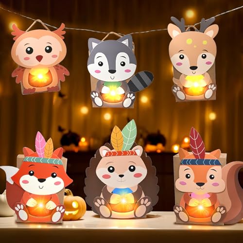 【6 Stück Tieren Laterne für Tierlaternen】Laternen Bastelset für Kinder mit 6 Tieren Süße motive wie(Fuchs, Eule, Waschbär, Eichhörnchen, Igel, Elch)! Enthält laternenstab, LEDs und DIY-Material – ohne Zusatzkauf sofort, verbreiten direkt eine gemütliche herbststimmung