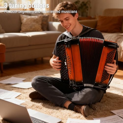 • Anfängerfreundlich und dennoch professionell: Dieses Akkordeoninstrument wurde für Musiker aller Niveaus entwickelt und kombiniert ein intuitives Layout mit drei Stimmtasten für eine einfache Bedienung.Ganz gleich, ob Sie Grundlagen beherrschen oder fortgeschrittene Techniken verfeinern: Es sorgt für eine reibungslose Lernkurve und professionelle Leistungsfähigkeit