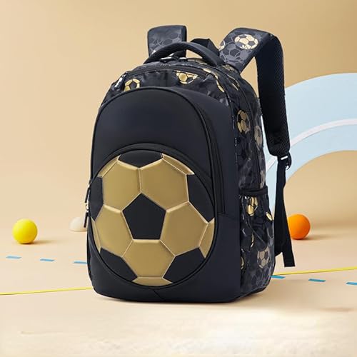 • Amacigana Schulrucksack Mädchen Teenager Grundschüler 1-3 Klasse Fußball Rucksäcke,Große Kapazität Schulranzen, Wasserdichter Leichter Rucksack Für Jungen (Black,40 * 19 * 29cm)