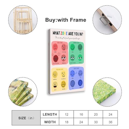 AMATWI Bildungsposter mit emotionalen Management-Zonen der Regulierung, 6 Stück, Leinwandposter, Wandkunst, Dekordruck, Gemälde für Wohnzimmer, Schlafzimmer, Dekoration, Rahmen-Stil, 60 x 90 cm