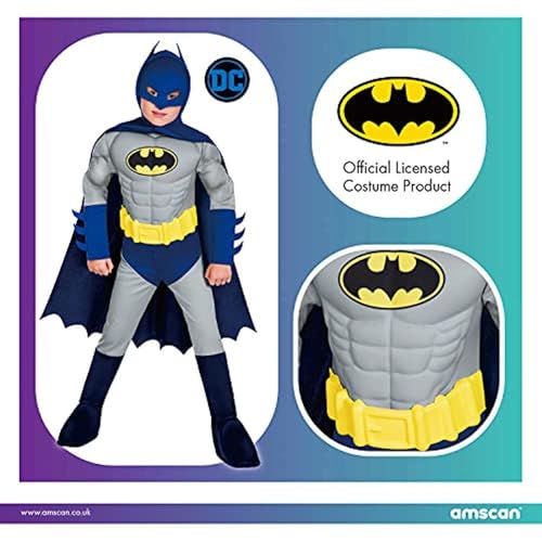 amscan 9908383 offiziell lizenziert Muskelanzug Batman Kostüm für Kinder Jungen 6-8 Jahre