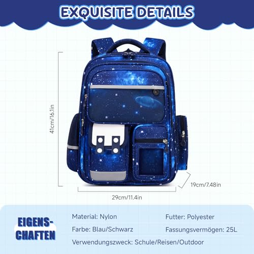 • REFLECTIVE STRIP DESIGN: Die reflektierenden Streifen auf unseren rucksäcken für Jungen 6-12 Jähre verbessern die Sichtbarkeit bei schlechten Lichtverhältnissen und schützen Ihr Kind auf dem Weg zur Schule