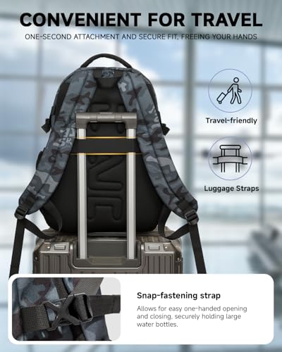 • BEQUEMES REISEN – Ausgestattet mit einem hinteren Gurt, der mit Koffern und Rollkoffern kompatibel ist und sich in Sekundenschnelle befestigen lässt, sodass Sie die Hände frei haben. Ein Druckknopfverschluss über der Seitentasche ermöglicht ein einfaches Öffnen und Schließen mit einer Hand und hält große Wasserflaschen sicher fest, sodass Sie entspannter reisen können