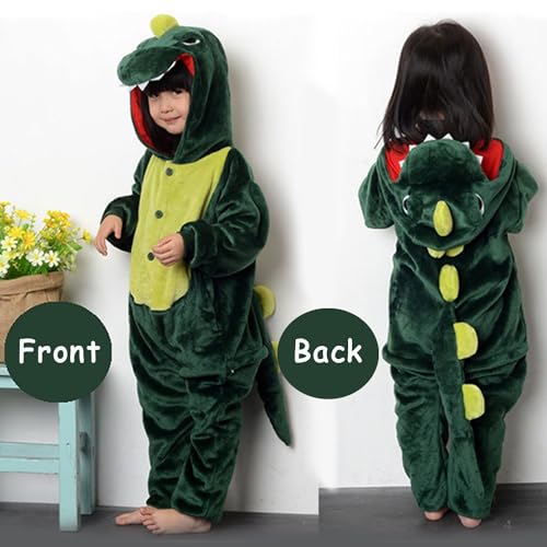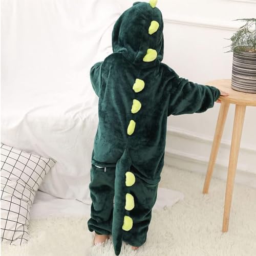 Aniepaa Dino Kostüm Kinder, Dinosaurier Kostüm Kinder mit Kapuze Flanell Winter Overall kostüme für Faschingskostüme Junge (90-105cm)