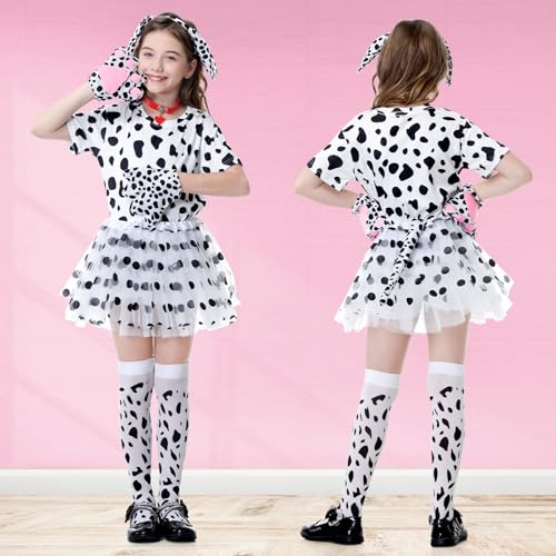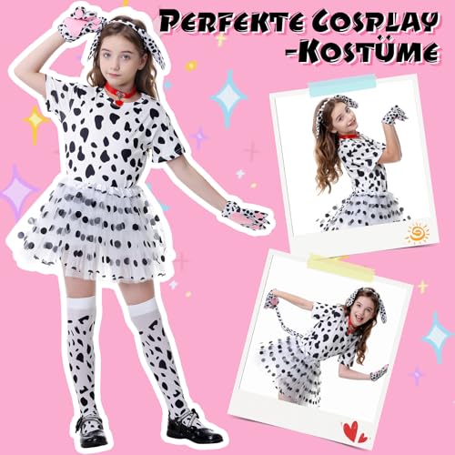 - Niedliches Design: Dieses Dalmatiner-Kinderkostüm mit klassischen Dalmatiner-Elementen hat ein unregelmäßiges Punktemuster auf dem T-Shirt und ein niedliches, lebhaftes Dalmatiner-Hundemotiv auf Stirnband, Halsband, Schwanz und anderen Accessoires, was es zu einer einzigartigen und stilvollen Verkleidung macht. Mit den Dalmatiner Cosplay Accessoires wird Ihr Kind bei allen Aktivitäten zum Blickfang.