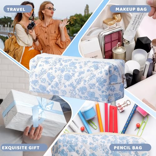 AstraGlam Federmäppchen für Mädchen – Süßes Mäppchen mit blauen Blumen, Ästhetische Federtasche mit Reißverschluss, Stifteetui für Schule, Büro, Kosmetik Tragbare Schreibwaren, Perfekt für