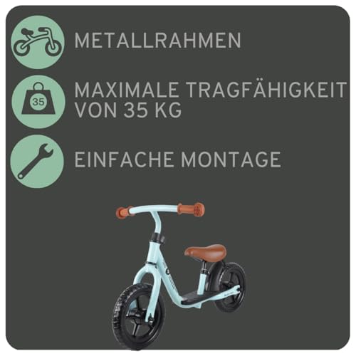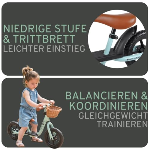 Bandits & Angels Metal Laufrad Starter Grün mit Fußplan ab 2 Jahren – Limited Edition – Mintgrünes Laufrad – Verstellbarer Sattel 29 bis 39 cm – Für Jungen und Mädchen – Kompakt und sicher