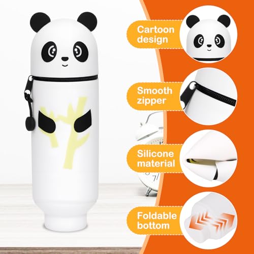 BBWELL 2-in-1 Weiche Silikontasche-Panda,Kawaii Silikon Federmäppchens,Tier Stifthalter,Cartoon Federmäppchen mit Reißverschluss für Stifte,Kawaii Federmäppchen für Kinder Schulbedarf (Weiß)