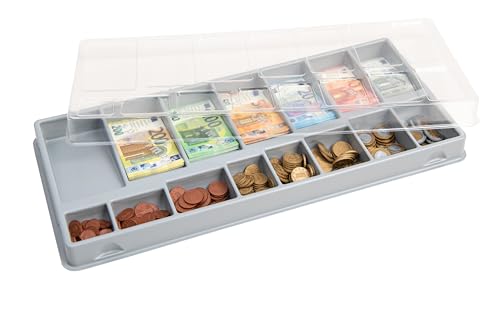 • DEN UMGANG MIT GELD LERNEN: Mit den Eurokassen lernen Schüler den Umgang sowie das Rechnen mit Geld kennen. In dem Kassenfach-Set sind je 110 Münzen und 65 Scheine enthalten um Rechenübungen zu erstellen.