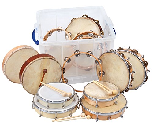 • Betzold Musik – Trommel-Set mit 6 Trommeln, 4 Schellenringen und 4 Tamburin, kombiniert mit tollem Klang, Inklusive 1 Paar Holzschlägel, Musik-Unterricht Schule Kinder
