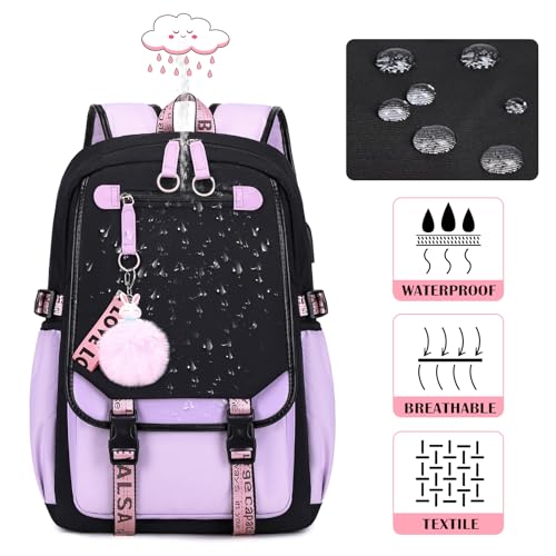 Bevalsa Schulrucksack Mädchen Teenager Schulranzen mit Schultaschen Set, Freizeit Rucksack Groß 20L Wasserdicht School Bag Backpack Casual Daypacks für Kinder Damen (Violett)