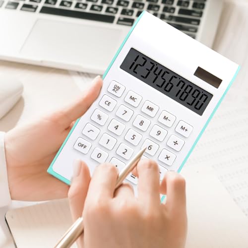 Blaugrüner Taschenrechner, grüner Bürobedarf und Zubehör, 10-stelliger Solar-Basis-Bürorechner, Tischrechner mit Dual-Power-Funktion und großem LCD-Display, blaugrüner Bürobedarf