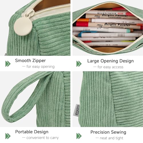 Boziee Federmäppchen Mäppchen Cord-Stoff Mädchen Teenager Stiftetasche Federtasche Pencil Case Schulmäppchen für Schule | Büro (Grün)