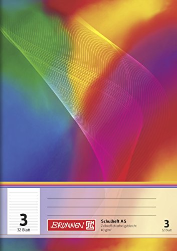 BRUNNEN Schulheft | A5, Lineatur 3, 32 Blatt, mehrfarbig