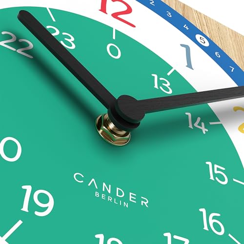 Cander Berlin MNU 11130 T Kinderwanduhr lautlos 35 cm Lernuhr Jungen Mädchen Kinderzimmer ohne Ticken Holzfurnier digital analog