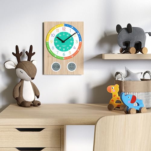 Tooky Toy Kalenderuhr Jahresuhr – Kinder Lernuhr – Holz Spielzeug...GUUMUXIN Kinderuhr, Lernuhr mit Zeigern für Kinder. Mehrfarbige Zifferblatt...
