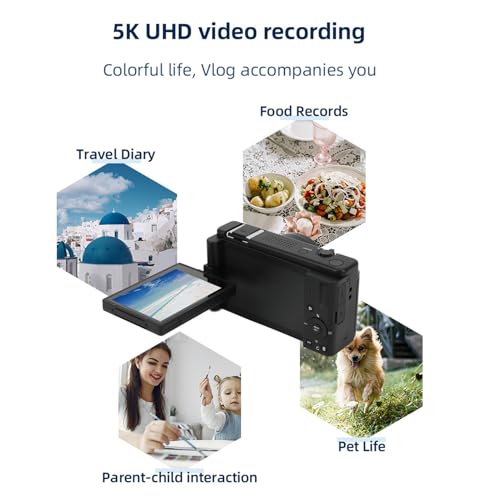 • Komfort des umklappbaren Bildschirms: Ein um 270° umklappbarer 2,8-Zoll-Bildschirm bietet der Digitalkamera den Vorteil einstellbarer Betrachtungswinkel, ideal für Selfies, Video-Blogs oder Overhead-Aufnahmen. Die Vlogging-Kamera integriert Gesichtserkennung und Autofokus und ermöglicht so eine reibungslose Fokusverfolgung für dynamische Aufnahmesitzungen.