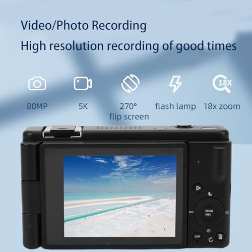 CHEOTIME Digitalkamera, 80 MP, 5K-Video-Kompaktkamera, 2,8 Zoll, 270°-Klappbildschirm, 18-facher Zoom, Vlogging-Kamera für Jungen, Mädchen, Kinder, Reisefotografie, Anfänger, (Schwarz)