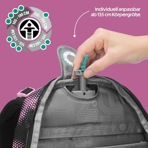 coocazoo Porter Schulrucksack „Pink Illusion”, schwarz-pink, ergonomischer & anpassbarer Tornister, höhen- & größenverstellbar, mit Brustgurt & Hüftgurt, ab der 3. Klasse