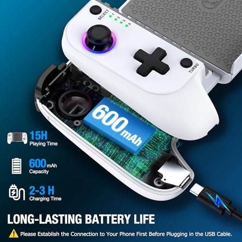 Coogamefly Handy Controller, Turbo Bluetooth Handheld Game Controller für iPhone/Android mit Hall Effekt Joystick ohne Totzonen, Kompatibel mit Xbox Cloud,Weiß