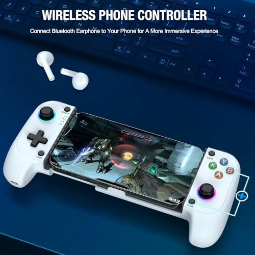 • HASACOOL Handy Controller für iPhone/Android, Bluetooth Smartphone Controller mit Hall Effect Joystick/RGB Licht, Support Xbox Cloud/Steam Link/GeForce Now/MFi Apple Arcade/Roblox