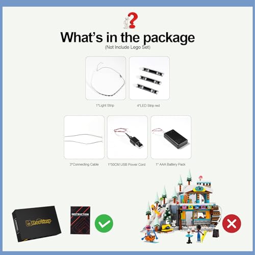 • 【Einfach zu Installieren】Das Beleuchtungsset wird mit einer klaren und prägnanten Anleitung geliefert. Bitte installieren Sie Ihre LED-Leuchte vorsichtig, ohne kräftiges Ziehen und ohne dass Sie sie biegen oder schütteln müssen. Die schlanken, flexiblen und unzerbrechlichen Lichtdrähte lassen sich leicht verstecken, sodass das Erscheinungsbild von lego friends skipiste und café nach der Installation nicht beeinträchtigt wird.