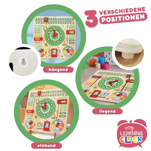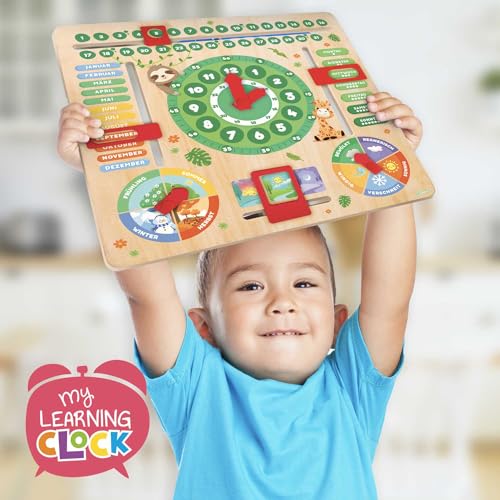 • Gemeinsames Spielen und kreatives Lernen: Respektvolle Lernmethode für Uhrzeiten in Stunden und Minuten. Kinder können die Begriffe Zeit, Tage, Daten, Monate, Wetter und Jahreszeiten auf spielerische Weise lernen. Die Zifferblätter der Lernuhr helfen Kindern, früh zu verstehen, wie man die Zeit liest. Kleine Pfeile und Kästchen ermöglichen es, die Zeit umzustellen