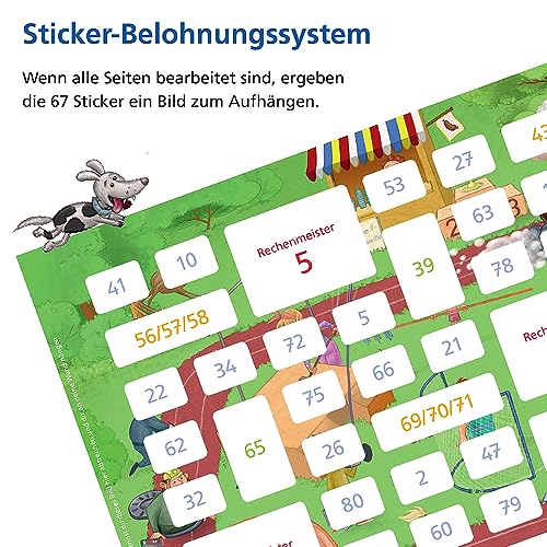 • Mit 67 Stickern auf den bearbeiteten Seiten kann das Kind ein Bild gestalten und seinen Lernerfolg belohnen.