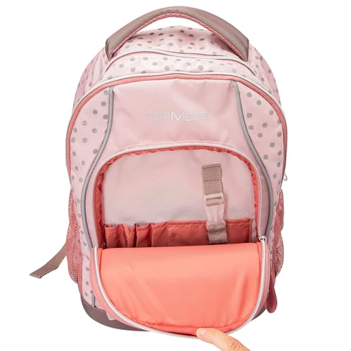 Depesche 14009 TOPModel Dots – Schulrucksack in Rosa, mit Model Motiv, Punkte-Muster und Glitzer, Schultasche mit verstellbaren Trägern