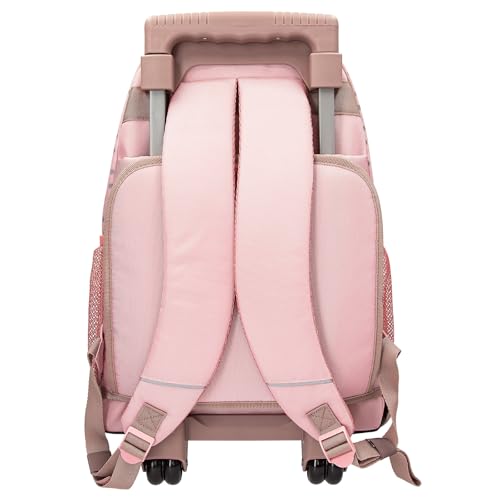 • Verfügt über 2 leichtgängige Räder, einen Teleskopgriff für leichten Transport, gepolsterte Träger und Rücken, eine Rückenklappe und einen wasserabweisenden Boden