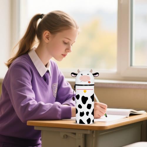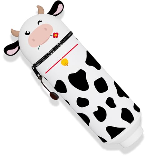 DGTSYAL 2-in-1 Weiche Federmäppchen – Kawaii Farm Silikontasche Federmäppchen, mäppchen – Stand Up, Tier Stifthalter, Stifte Mäppchen, Stifthalter Bleistifttasche Mädchen Junge (Kuh)