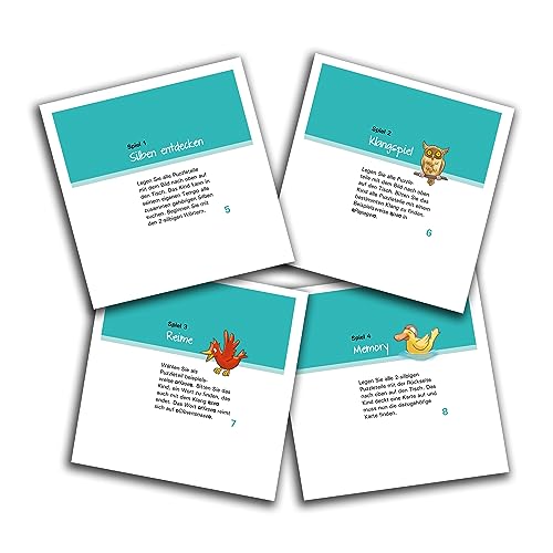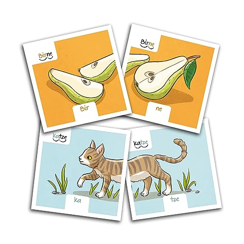 • ROBUSTE BILDKARTEN MIT LIEBEVOLLEM DESIGN – Die Karten sind stabil, kindgerecht illustriert und auf kleine Hände abgestimmt. Die klare Gestaltung unterstützt das Verstehen und Zuordnen der Silben